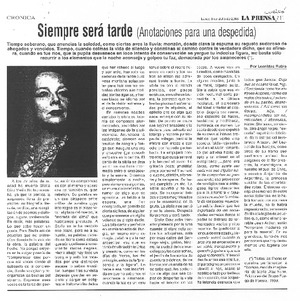 Siempre será tarde [artículo] / La Prensa (Diario : Curicó, Chile)-- jul. 3, 2006, p. 11. .