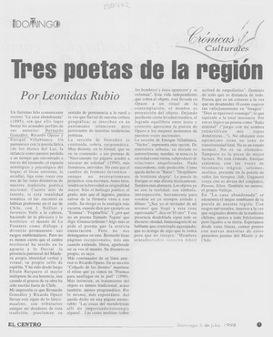 Tres poetas de la región [artículo] / Leonidas Rubio. El Centro. -- jul. 5, 1998, p. 3 (suplemento) .