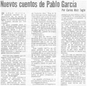 Nuevos cuentos de Pablo García [artículo] / Carlos Ruiz-Tagle. La Tercera (Santiago, Chile)-- mar. 25, 1979, p. 22. .