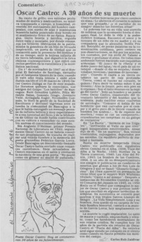 Óscar Castro, a 39 años de su muerte [artículo] / Carlos Ruiz Zaldívar. El Mercurio (diario : Valparaíso, Chile)-- nov. 1, 1986, p. 10. .