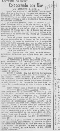 Colaborando con Dios [artículo] / Andrés Sabella. El Mercurio (Diario : Antofagasta, Chile)-- dic. 23, 1974, p. 3. La Prensa (Tocopilla, Chile)-- dic. 23, 1974, p. 3. .