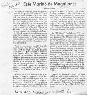 Este Marino de Magallanes [artículo] / Andrés Sabella. Las Últimas Noticias (Diario : Santiago, Chile)-- mar. 3, 1988, p. 8. .
