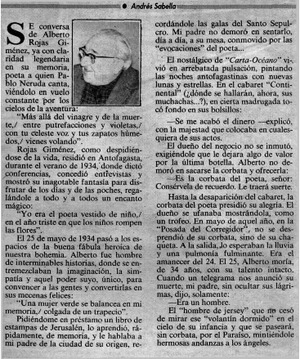 La corbata del poeta [artículo] / Andrés Sabella. Las Últimas Noticias (Diario : Santiago, Chile)-- nov. 24, 1985, p. 2. retr. .