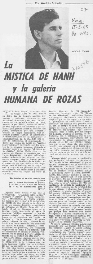 La mística de Hanh y la galería humana de rozas [artículo] / Andrés Sabella. Vea (Santiago, Chile)-- no. 1493 (ene. 11, 1968) p. 27. retr. .
