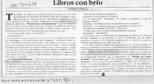 Libros con brío [artículo] / Andrés Sabella. Análisis. -- no. 231 (jun. 20, 1988) p. 2. .