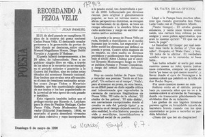 Recordando a Pezoa Véliz [artículo] / Juan Samuel. La Nación. -- mayo 6, 1990, p. 7 (suplemento) .