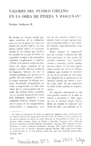 Valores del pueblo chileno en la obra de Pineda y Bascuñán [artículo] Enrique Sanhueza B.