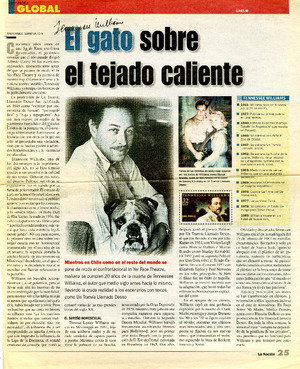 El gato el tejado caliente [artículo] / Juan Pablo Sarmiento P. La Nación (Santiago, Chile)-- feb. 24, 2003. il. .