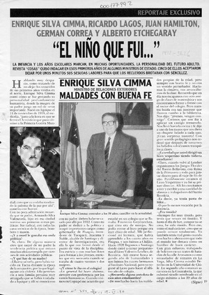 "El Niño que fui -- " [artículo]. Cosas. -- no. 354 (abr. 19, 1990) p. 19 retr. .