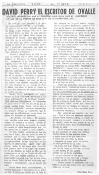 David Perry el escritor de Ovalle [artículo] / Julio Silva Lazo. La Provincia (Ovalle, Chile)-- abr. 21, 1971, p. 7. .