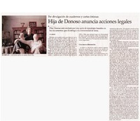 Hija de Donoso anuncia acciones legales [artículo] Elia Simeone.