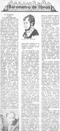 El tigre de papel [artículo] / Claudio Solar. La Estrella (Valparaíso, Chile)-- ene. 8, 1981, p. 22. retr. .