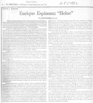 Enrique Espinoza, "Heine" [artículo] / Hernán del Solar. El Mercurio (Santiago, Chile)-- dic. 19, 1971, p. 4. .