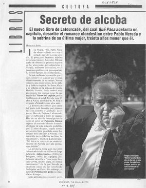 Secreto de alcoba [artículo] / Marcelo Soto. Qué Pasa. -- no. 1191 (feb. 5, 1994) p. 44-48 retr. .