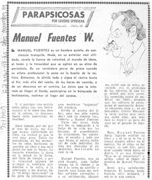 Manuel Fuentes W. [artículo] / Saverio Sprovera. La Segunda (Diario : Santiago, Chile)-- dic. 28, 1974, p. 3. retr. .