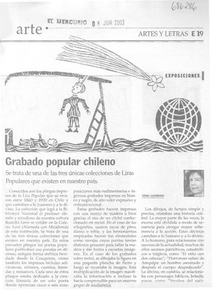 Grabado popular chileno [artículo] / Gema Swinburn. El Mercurio (Diario : Santiago, Chile)-- jun. 8, 2003, p. E19. retr. .