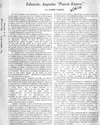 Eduardo Anguita, "Poesía entera" [artículo] / Ignacio Valente. El Mercurio (Diario : Santiago, Chile)-- oct. 3, 1971, p. 3. .