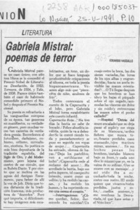Gabriela Mistral, poemas de terror [artículo] / Eduardo Vassallo. La Nación. -- mayo 25, 1991, p. 10 .
