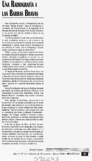 Una radiografía a Las barras bravas [artículo] Ricardo Vergara UNoticias año 3, no. 13 (dic.-ene. 2000) p. 7 .