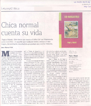 Chica normal cuenta su vida [artículo]/ Juan Manuel Vial Sanfuentes. La Tercera (Diario: Santiago, Chile) mar. 15, 2008, p. 11 (suplemento "Cultura") .