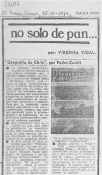 Geografía de Chile [artículo] / Virginia Vidal. El Siglo (diario : Santiago, Chile)-- abr. 28, 1971, p. 11. il. .
