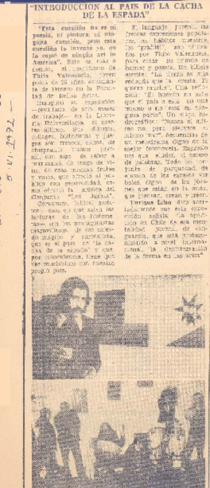 Introducción al país de la cacha de la espada" [artículo] / Virginia Vidal. El Siglo (diario : Santiago, Chile)-- mayo 5, 1971, p. 10. retr. .