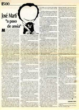 José Martí "a paso de ansia" [artículo] / Virginia Vidal. Punto Final (Chile)-- no. 500 (jul. 6, 2001) p. 30. retr. .