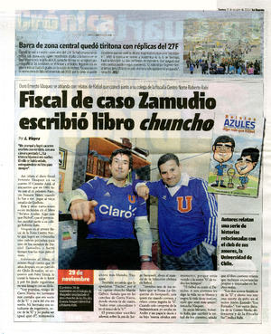 Fiscal de caso Zamudio escribió libro chuncho [artículo] / L. Vieyra La Cuarta (Diario : Santiago, Chile)-- oct. 31, 2013, p. 2 .