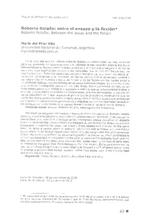 Entre el ensayo y la ficción [artículo] / María del Pilar Vila. Taller de Letras (revista : Santiago, Chile)-- no. 46 (2010) p. 83-98. .
