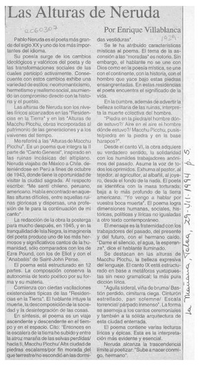 Las alturas de Neruda [artículo] / Enrique Villablanca. La Mañana. -- jul. 29, 1994, p. 5. .