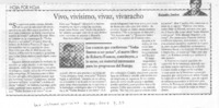 Vivo, vivísimo, vivaz, vivaracho [artículo] / Alejandro Zambra. Las Últimas Noticias (Diario : Santiago, Chile)-- mayo 4, 2005, p. 35. retr. .