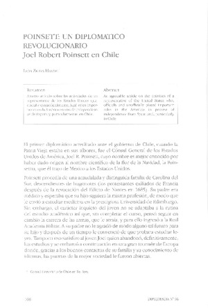 Poinsett, un diplomático revolucionario [artículo] / León Zeldis Mandel. Diplomacia (Santiago, Chile)-- no. 96 (oct. dic. 2003) p. 108-118. .