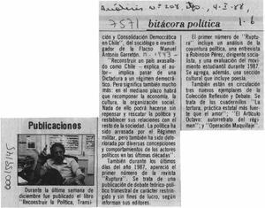 Publicaciones [artículo]. Análisis. -- no. 208 (ene. 4, 1988) p. 6. .