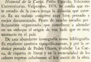 Historial de la cueca. [artículo] Boletín Bibliográfico Literario (Santiago, Chile)-- no. 12 (1979) p. 6. .