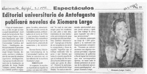 Editorial Universitaria de Antofagasta publicará novelas de Xiomara Largo [artículo]. Chañarcillo. -- ene. 9, 1996, p. 23 retr. .