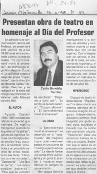 Presentan obra de teatro en homenaje al día del profesor [artículo]. Chañarcillo. -- oct. 15, 1998, p. 27 .