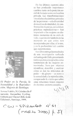 Autores chilenos - Benavente, María Cristina - El Poder en la pareja, la sexualidad y la reproducción - Gysling, Jacqueline - Poder en la pareja, la sexualidad y la reproducción - Valdés, Teresa