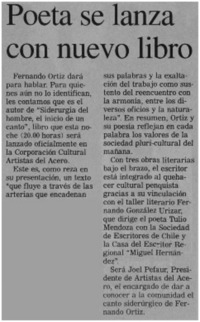 Poeta se lanza con nuevo libro. [artículo]