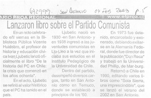 Lanzaron libro sobre el Partido Comunista. [artículo] Diario Proa (San Antonio, Chile)-- feb. 4, 2003, p. 5. .
