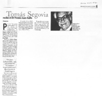 Tomás Segovia recibe el 15 Premio Juan Rulfo [artículo]. Diario Siete (Diario : Santiago, Chile)-- ago. 2, 2005, p. 29. .