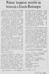 Mañana inauguran monolito en homenaje a Ernesto Montenegro. [artículo]