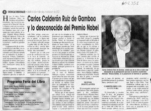 Carlos Calderón Ruiz de Gamboa y lo desconocido del Premio Nobel [artículo] El Día (diario : La Serena, Chile)-- feb. 6, 2002, p. 28 retr. .
