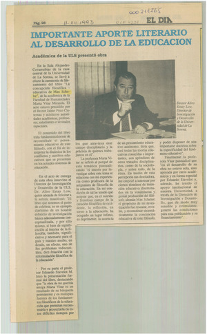 Importante aporte literario aL desarrollo de la educación [artículo]. El Día (diario : La Serena, Chile)-- dic. 11, 1993, p. 28 .