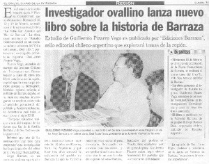 Investigador ovallino lanza nuevo libro sobre la historia de Barraza [artículo] El Día (diario : La Serena, Chile)-- ene.31, 2005, p. 17 retr. .