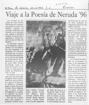 Viaje a la poesía de Neruda '96 [artículo]. El Día (diario : La Serena, Chile)-- sept. 20, 1996, p. 5. retr. .