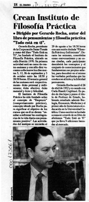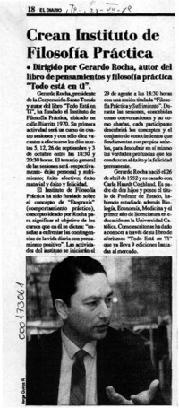 Crean Instituto de Filosofía Práctica [artículo]. El Diario. -- ago. 28, 1989, p. 18 retr. .