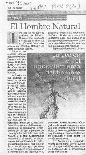 El Hombre natural [artículo]. El Diario. -- mayo 13, 1991, p. 22 il. .