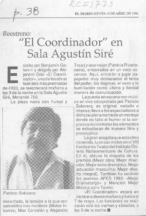 "El Coordinador" en sala Agustín Siré [artículo]. El Diario. -- abr. 14, 1994, p. 38 .