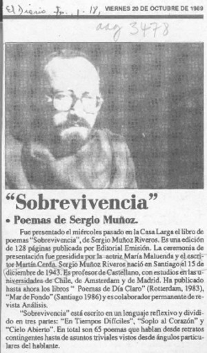 "Sobrevivencia" [artículo]. El Diario . -- oct. 20, 1989, p. 18 .
