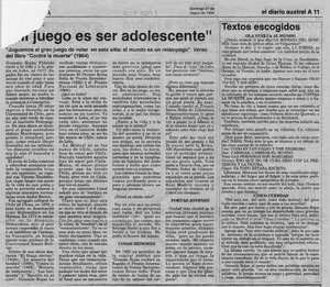 "Mi juego es ser adolescente" [artículo]. El Diario Austral (Temuco). -- mar. 27, 1994, p. A11 .